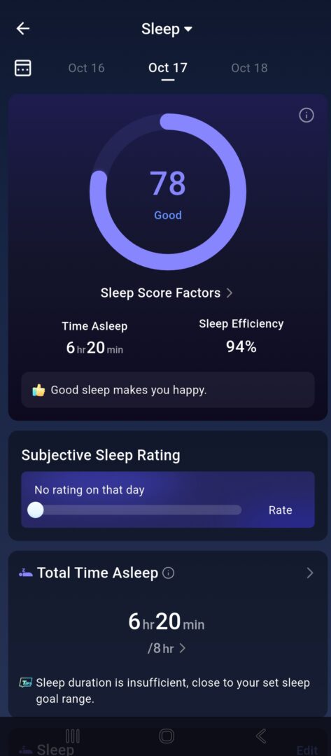 Positiivse poole pealt võib aga öelda, et kasutajat premeeritakse teatud eesmärkide saavutamise eest nagu näiteks optimaalne uneaeg või rõnga kandmine 10 päeva järjest. Sellised pisiasjad teevad meele rõõmsamaks ning innustavad tublim olema.