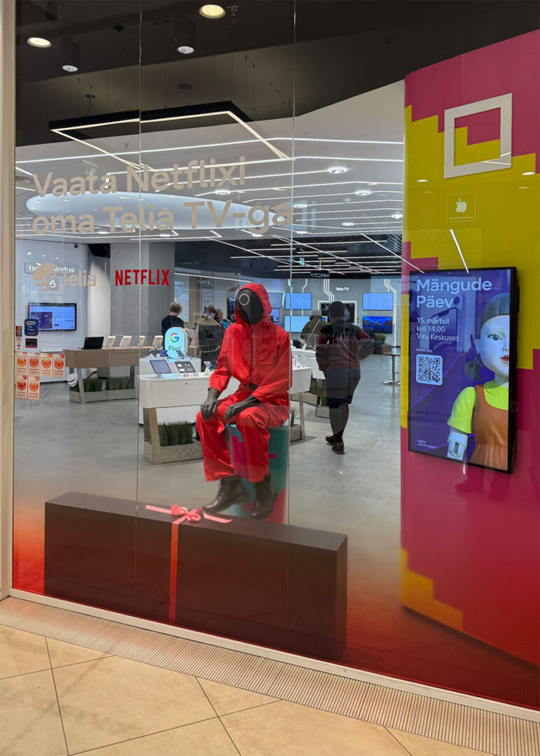 „Kuna viimasel paaril aastal on just „Squid Game“ olnud paljudes riikides vaadatavuse tipus, otsustasime sarjale omast temaatikat ka Netflixi tutvustavas turunduskampaanias kasutada. Lisaks linastub „Squid Game’i“ 3. ja ühtlasi ka viimane hooaeg juba juunis. Seetõttu võib meie esindustes kohata sarjast tuttavaid punaste tunkede ja maskidega valvureid, linnapilti oleme aga paigaldanud„Squid Game’i“ suured Young-Hee nukud“ selgitas Krustok.