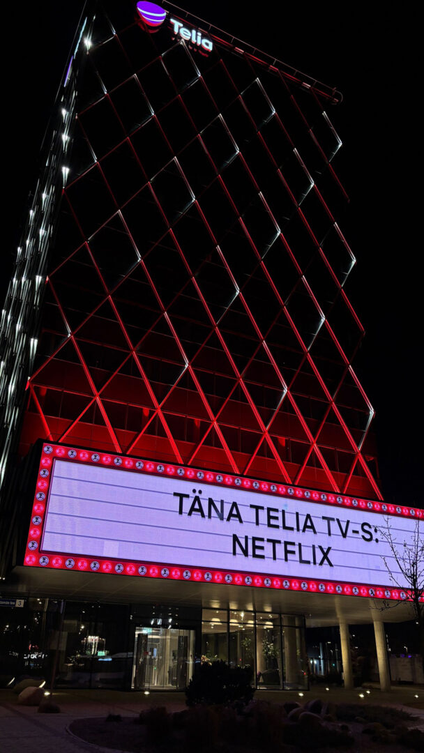 Lisaks sellele värvus märtsi alguses Netflixile omasesse punasesse tooni ka Telia peahoone, andes märku maailma populaarseima voogedastusteenuse jõudmisest Telia TV pakettidesse.
