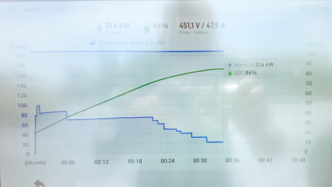 Väga hea ülevaate annab Elektrumi laadimisjaam oma ekraanile – näed millise võimusega auto elektrienergiat vastu võtab ja millal auto kiire laadimise lõpetab.