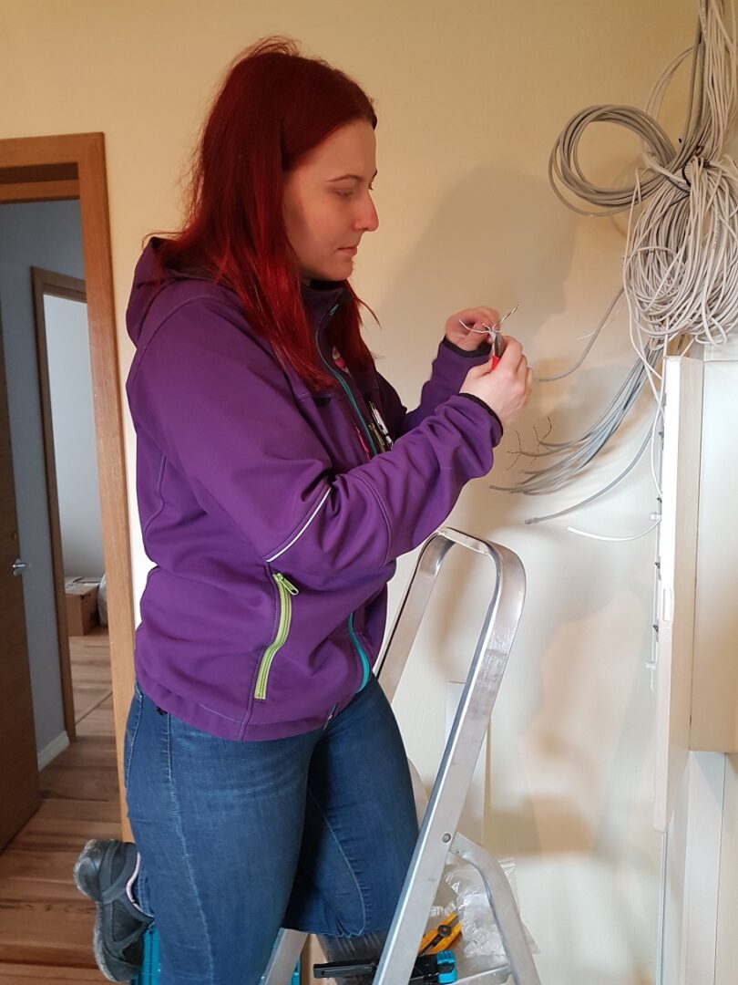 „Vaatan juba õhtul valmis, mida järgmisest päevast oodata. Hommikul võtan laost vajalikud seadmed-materjalid, helistan kliendile ette ja asun teele. Lihtsustatult öeldes paneme paigalduse ajal sidekilbis signaali peale, veame juhtme tuppa, paigaldame seadmed, veendume interneti ja telepildi olemasolus, vastame küsimustele ja vormistame lepingu,“ kirjeldab Karmen oma tüüpilist igapäeva.