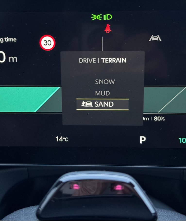 Kuna tegemist on ikkagi neliveolise autoga, siis on valikus kolm erinevat maastikurežiimi – lumi, muda ja liiv. Ahja jõe luhal said ka maastikurežiimid ära proovitud ning EV9 sai kenasti hakkama raskel maastikul. Kuigi jah, all olevad 21-tollised rehvid on puhtalt maanteesõidu jaoks loodud ega aita väga kaasa auto maastikuvõimekuse tõstmisel. Seda enam pean kiitma KIA inseneride tööd elektroonilise nelikveo õnnestunud loomise eest.