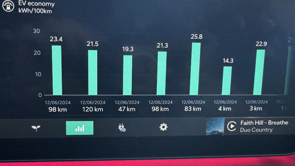 Liikudes kõlavaheteedel 50/70/90 km/h õnnestus saada tootja poolt lubatud keskmine – 19,3 kW/100 km, mis arvestades auto suurust ning massi, ei olegi nii suur.