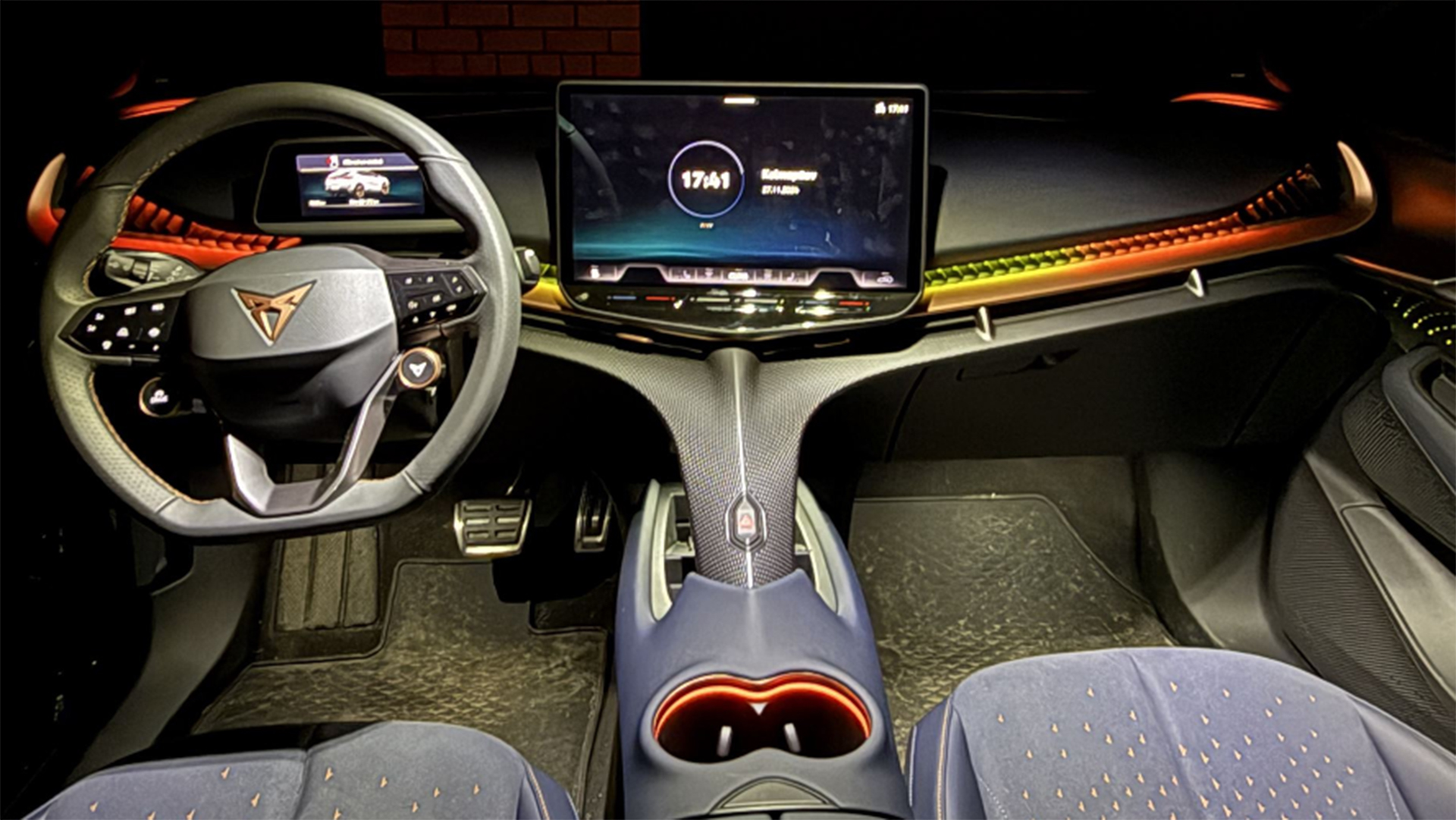 Salongis sõltub kõik sellest, millisel kellaajal autosse istuda. Mida hilisem ja pimedam aeg, seda rohkem meeleoluvalgus kaasa mängib. Ja mitte ainult kitsa triibuna kuskil servas, vaid lahedalt ka uste polstris. Pronksjad detailid ning ulmefilmilik kesk-konsool rõhutavad seda väljast kogetud agressiivsust ka salongis edasi. Mulle selline lähenemine meeldib. See ongi „see miski“, mis muudab Cupra eristuvaks teistest autodest.
