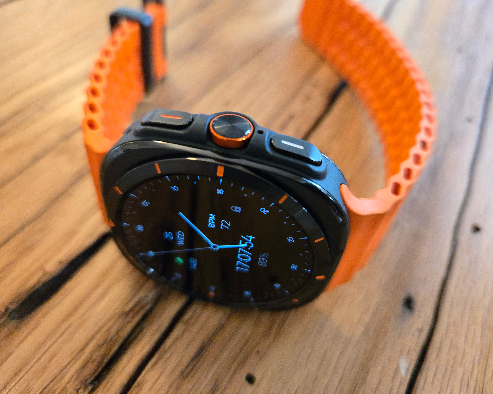 В нашем случае, помимо названия, особенное сходство демонстрируют, например, ремешки. В оранжевой версии они на глаз непрофессионала неотличимы, так что первое, что я рекомендовал бы владельцу Samsung Galaxy Watch Ultra, – заменить этот ремешок. Тогда внешний вид часов становится более индивидуальным, менее броским и даже более комфортным для пользователя.